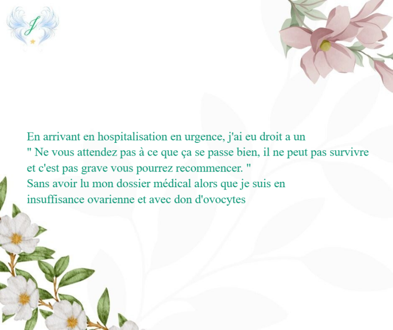 "Je ne peux pas vous prendre en charge (après 4h d'attente devant des berceaux vides) car il manque 1 jour sur le protocole"; "si monsieur, le diagnostic est certain mais votre femme doit revenir car la gynéco s'est trompé d'un jour (alors que pas du tout , elle m'avait adressé là car psychologiquement il fallait me prendre en charge et que la fausse couche était certaine et datait déjà), puis devant le manque de gynéco et ma détresse, ils ont voulu m'attacher et me mettre en psy alors que je suis tout à fait "normale", je demandais juste qu'on me prenne en charge aux urgences gynéco ce qui a été refusé après un longue attente. J'ai quitté l'hopital (du Chesnay, une vraie honte et malorganisé de mettre les fausses couches avec la maternité) puis je suis allée dans un hopital à côté de chez moi en banlieue, là j'ai été ajoutée aux patients et prise en charge avec beaucoup de bienveillance, j'ai été mise à un autre étage que la maternité et j'ai reçu les traitements nécessaires. Il y a un vrai désintérêt et un vrai manque de suivi des fausses couches hélas.